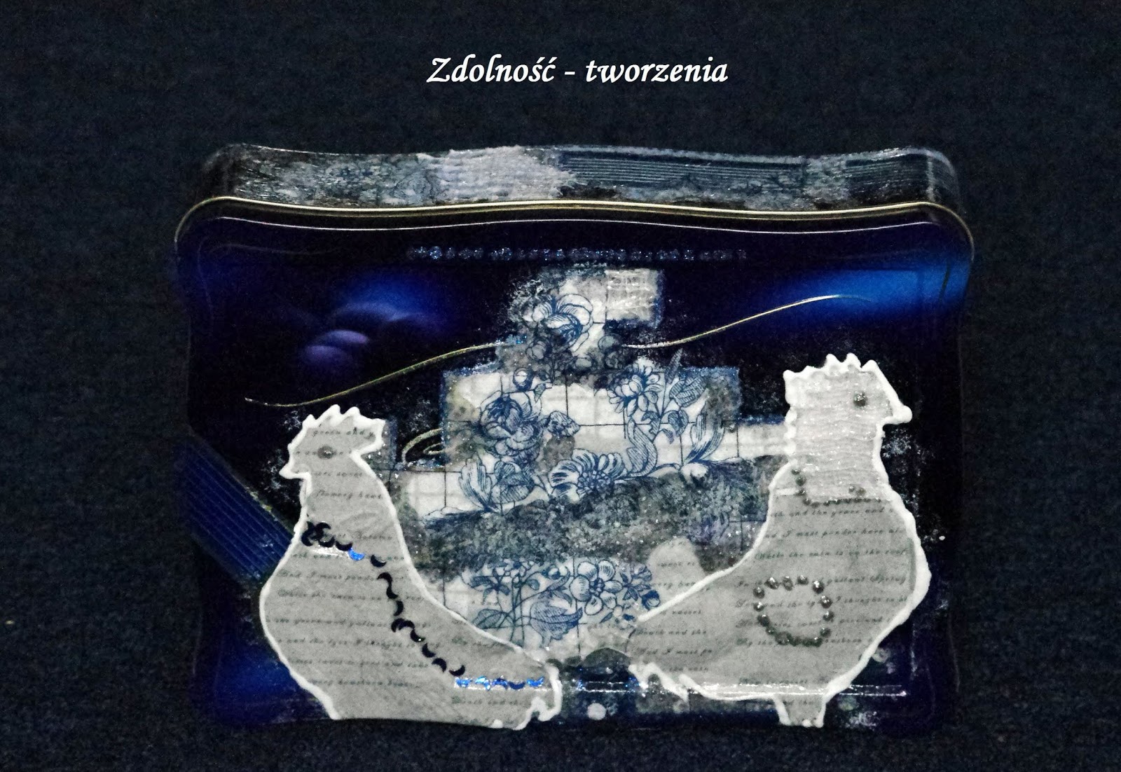 W całości ta puszka prezentuje się jeszcze lepiej - ma taki królewski powiedziałabym charakter. Bardzo elegancka, a przecież "pospolite" kurki są jej ozdobą. Świetny efekt!